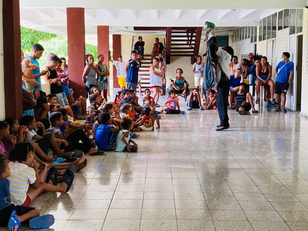 De igual modo, integrantes del Proyecto Sociocultural Artesaneando con Yeny realizaron un espacio de creación de manualidades con los pequeños resguardados en el centro de evacuación del Complejo Vocacional José Maceo Grajales, sitio donde también el Payaso Riquimbili del Grupo de Variedades Circenses Carpandilla interactuó mediante dinámicas lúdicas con los pequeños y las familias guantanameras protegidas en este centro, del impacto del potente evento meteorológico Melissa.