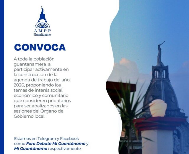 Guantánamo – La Asamblea Municipal del Poder Popular en Guantánamo convoca al pueblo a participar activamente en la construcción de la agenda de trabajo del año 2026, proponiendo los temas de interés social, económico y comunitario que consideren prioritarios para ser analizados en las sesiones del Órgano de Gobierno local.