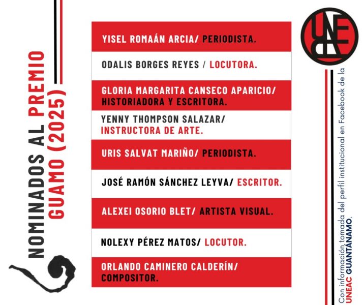 El Comité Provincial de la Unión Nacional de Escritores y Artistas de Cuba (UNEAC) en Guantánamo informó en su perfil institucional en la red social Facebook los nueve nominados al Premio Guamo 2025, máximo reconocimiento que confiere esta organización cultural a la personalidad artística del año.