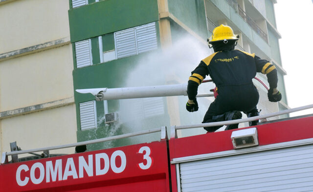 Guantánamo- Un ejercicio de extinción de incendios en un edificio de viviendas de 18 plantas del Reparto Caribe de la ciudad de Guantánamo, constituyó hoy una de las acciones fundamentales de la Semana de Reducción de Riesgos de Desastres y de Protección contra Incendios, la cual se inició el pasado lunes 15 de mayo en todo el país.