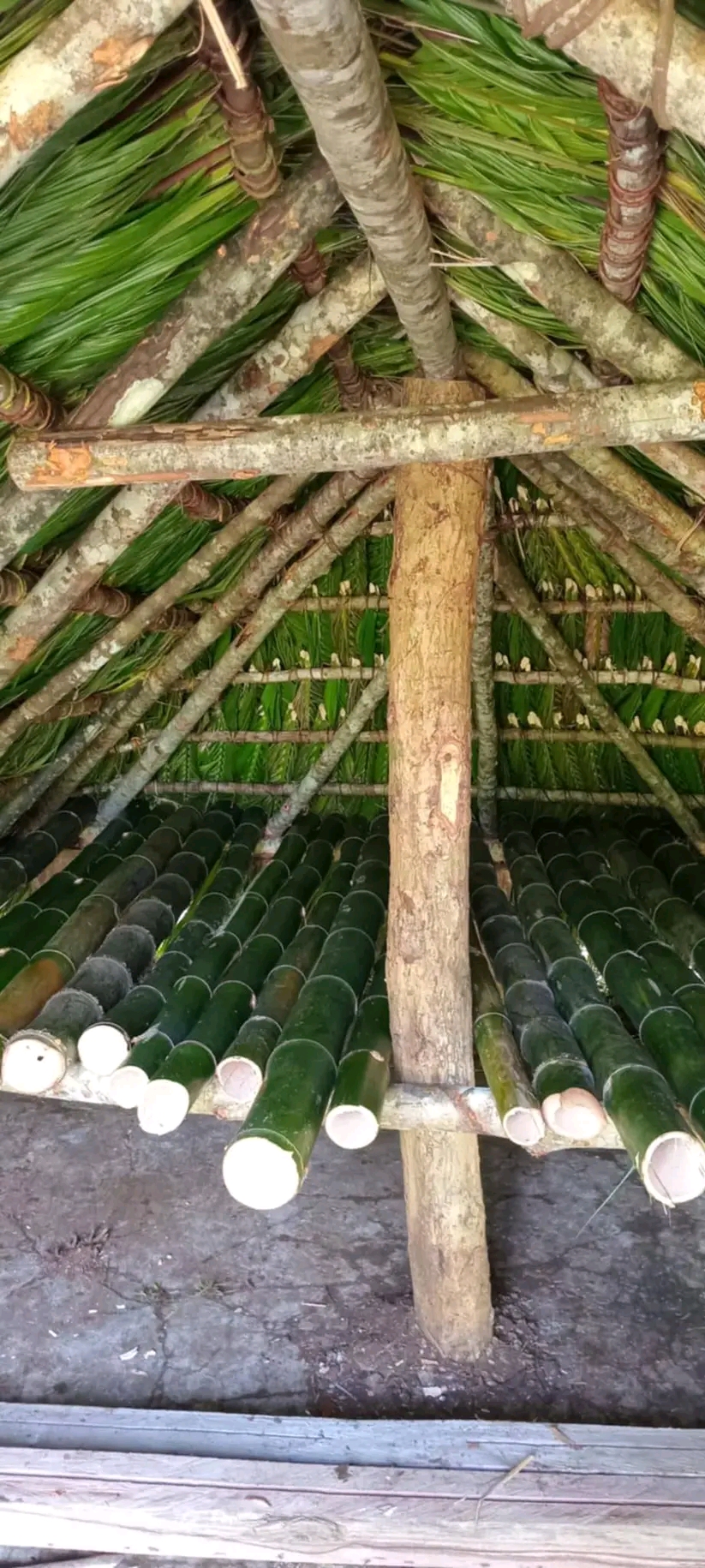 La construcción está hecha principalmente con materiales accesibles y técnicas tradicionales, lo que facilita su edificación en zonas rurales donde los recursos pueden ser limitados.