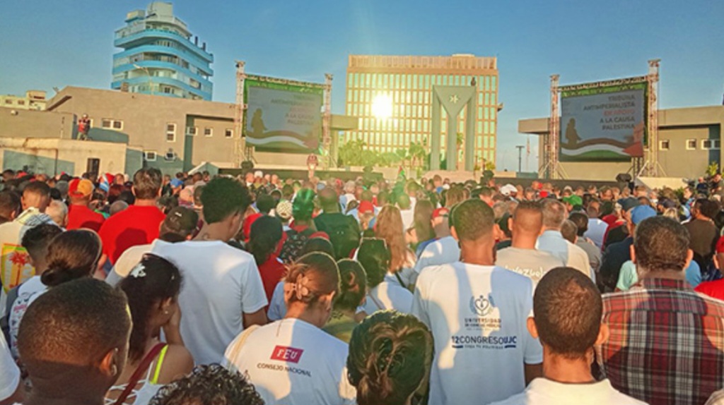 The second secretary of the Young Communist League, Yaliel Cobo, denounced the “historical complicity of the United States, the supposed champion of democracy, which today feels not the slightest remorse for the genocide in Gaza, where more than 67,000 Palestinians, mostly women and children, have died.”