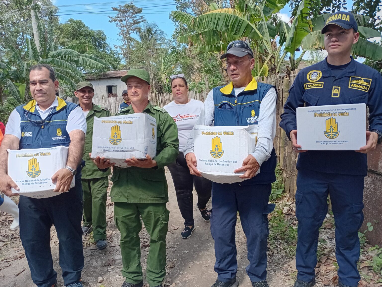 Guantánamo – Members of the National Unit for Disaster Risk Management, along with the Colombian Navy, arrived in the Costa Rica town in the Guantánamo municipality of El Salvador to deliver a donation to ten people affected by Hurricane Melissa in eastern Cuba.