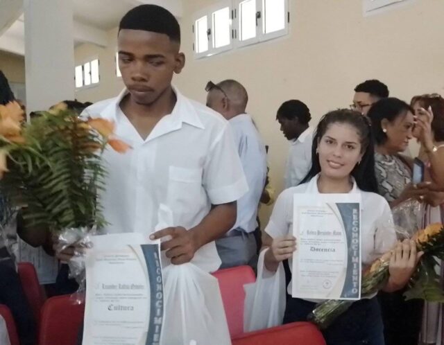 La nueva hornada de educadores tuvo lugar en el Teatro de la escuela provincial del Partido Israel Reyes Sayas, donde se reconocieron a los mejores graduados, entre ellos Rebeca Hernández Matos, de la especialidad de Inglés, y Ángel Ariel Jiménez, de Música, quienes resultaron los egresados más integrales.