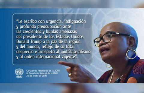 La petición fue trasladada en una carta firmada por Norma Goicochea Estenoz, presidenta de la Asociación Cubana de las Naciones Unidas (ACNU), en la cual se denuncia que las recientes declaraciones de la administración estadounidense quebrantan el derecho internacional y violan la responsabilidad primordial del Consejo de Seguridad de mantener la paz y la seguridad internacionales.